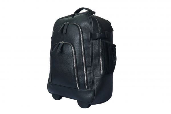 Einfach Reißverschluss auf der Rückseite öffnen – schon sind die gepolsterten und längenverstellbaren Schultergurte einsatzbereit. Die nun geöffnete Klappe wird per Klettverschluss am Boden fixiert und erhöht als zusätzliches Rückenpolster den Tragekomfort. Gerade bei längeren Wegstrecken auf unebenem Untergrund oder bei Treppenläufen sorgt diese Tragefunktion für angenehmes Reisen. Ein weiterer Vorteil: man hat beide Hände frei, was in Zeiten von Smartphone & Co. ein nicht zu unterschätzender Vorteil ist.