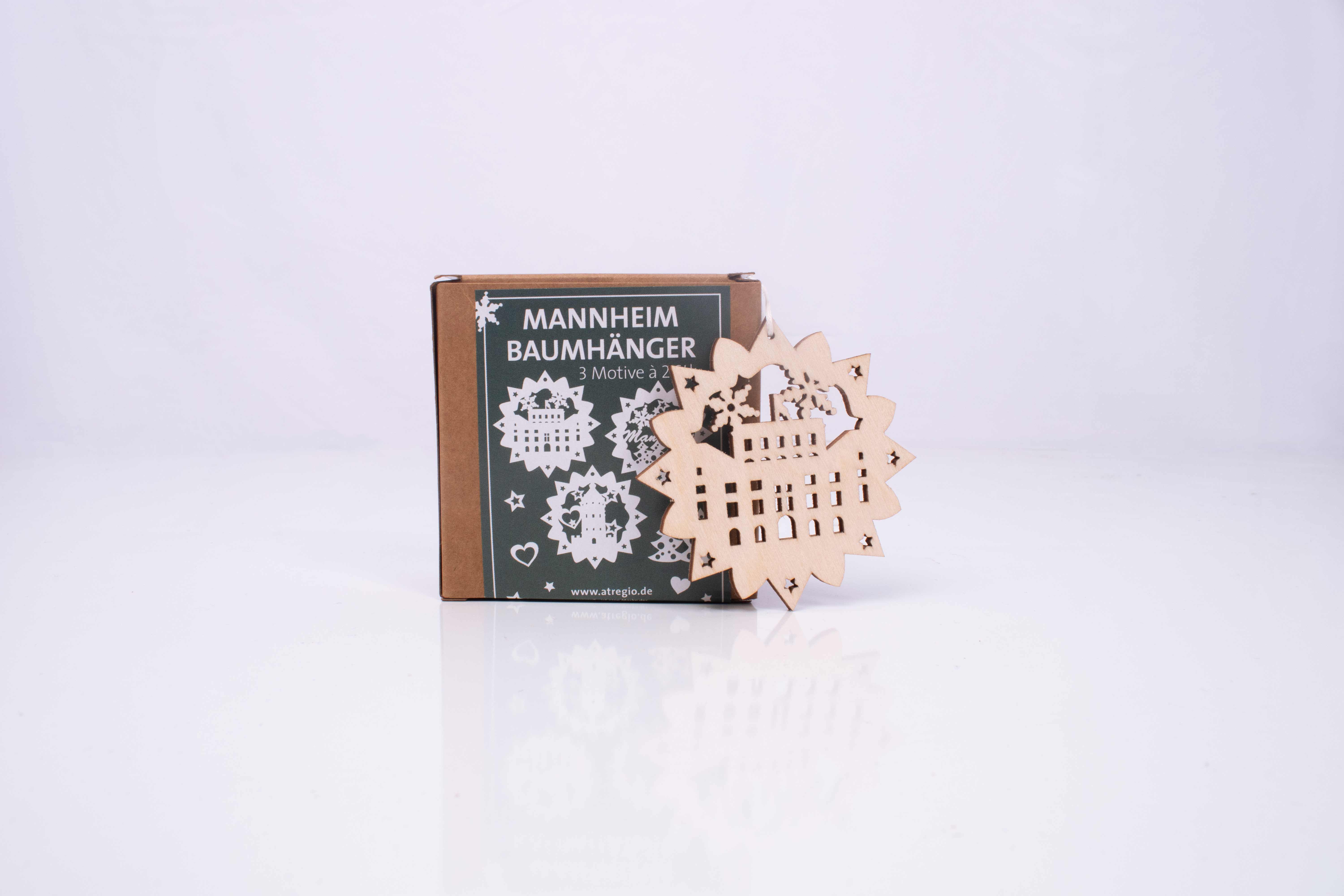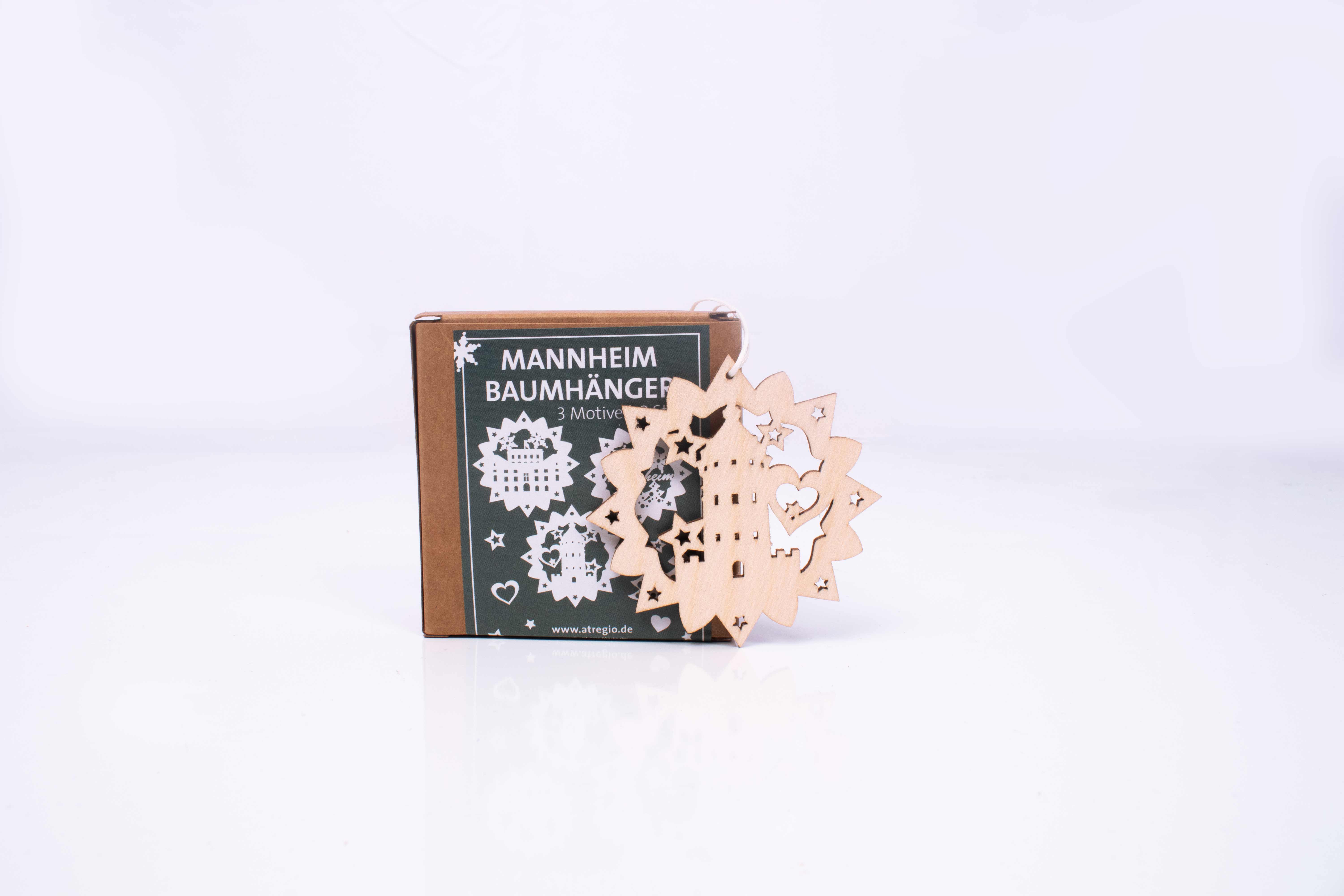 Wunderschöner Christbaumschmuck aus Echtholz mit detailreichen Mannheim Motiven. Gefertigt im Erzgebirge, der Traditionsstätte für deutsche Holzkunst.