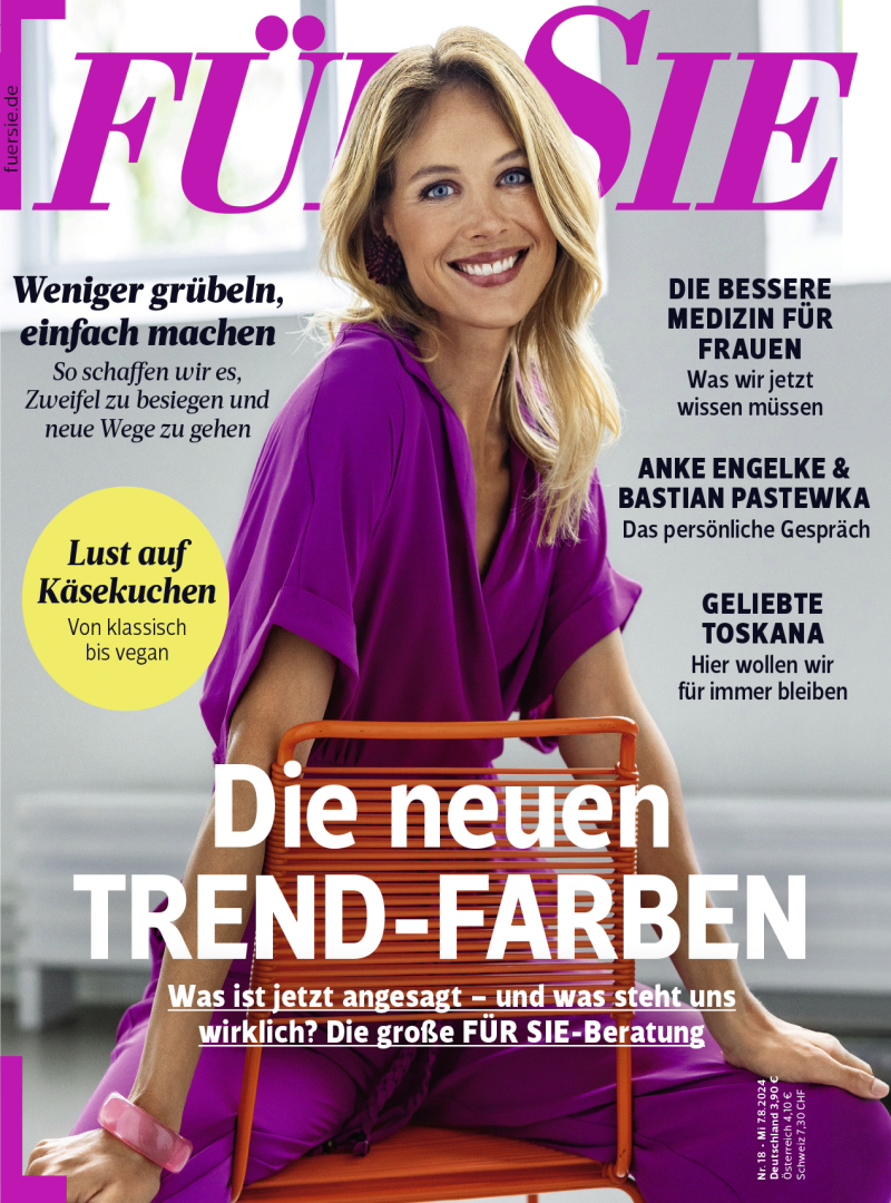 Für Sie ist ein modernes Frauenmagazin für modeinteressierte und weltoffene Frauen. Aktuelle Themenvielfalt von Mode und Beauty bis Kochen und Reisen macht die Zeitschrift zu einem wertvollen Lebensbegleiter. Interessante Artikel aus den Rubriken Partnerschaft, Wellness, Wohnen und Einrichten runden neben spannenden Hintergrundberichten oder Portraits aus dem Leben von Prominenten das Programm ab. Leckere Rezepte und Ideen zu gesunder Ernährung geben den kleinen Wohlfühlkick.