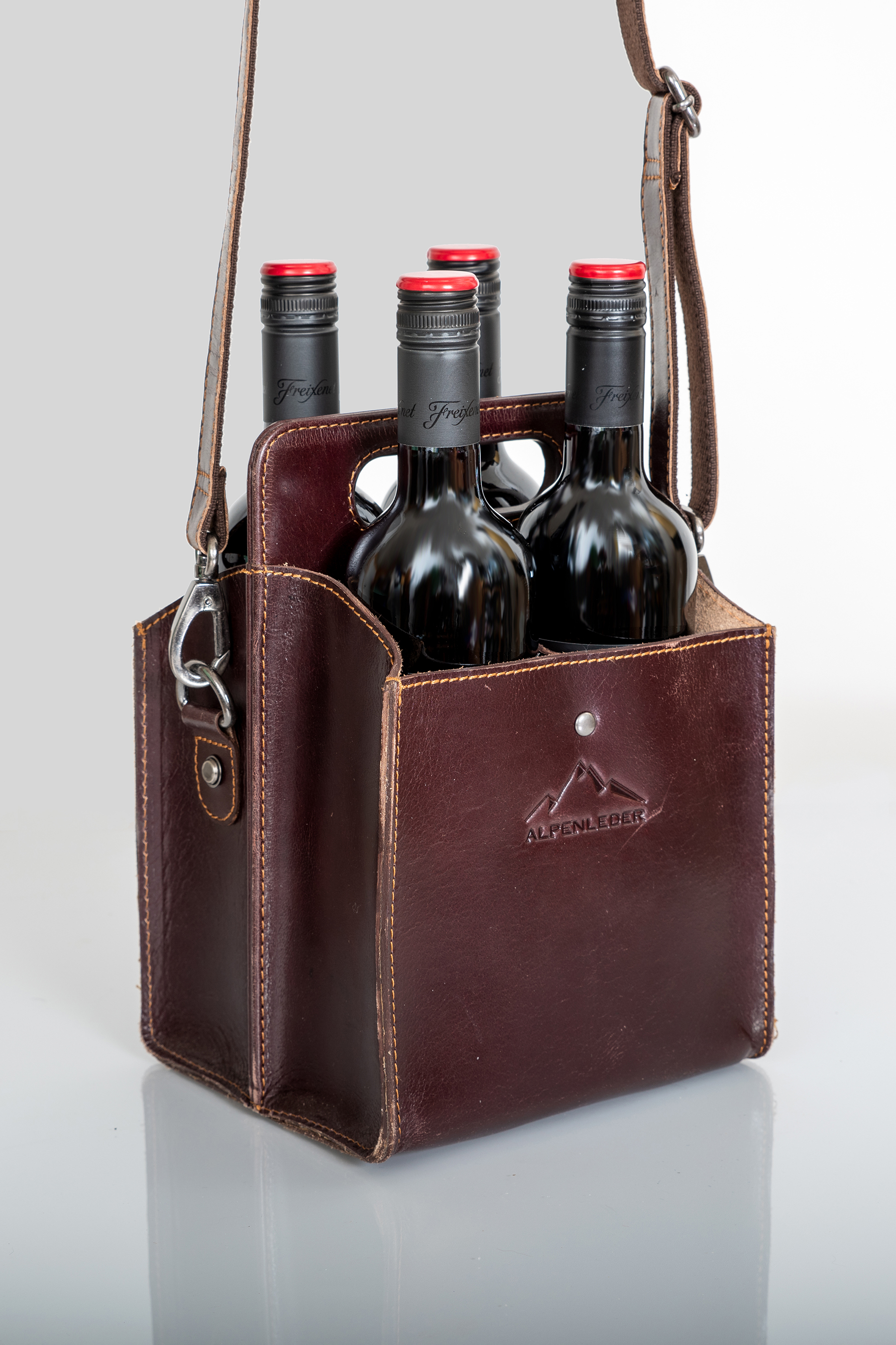 Der WEINVIERER von Alpenleder ist die ultimative Geschenkidee: verschenken Sie Wein, Prosecco oder andere Getränke mit der Flaschentasche WEINVIERER. Ebenso sind Sie im Alltag mit der Getränketasche gut aufgestellt - ob beim Einkauf, als Begleiter zur Einladung bei Freunden oder einfach als Aufbewahrungstasche in Ihrer Wohnung.