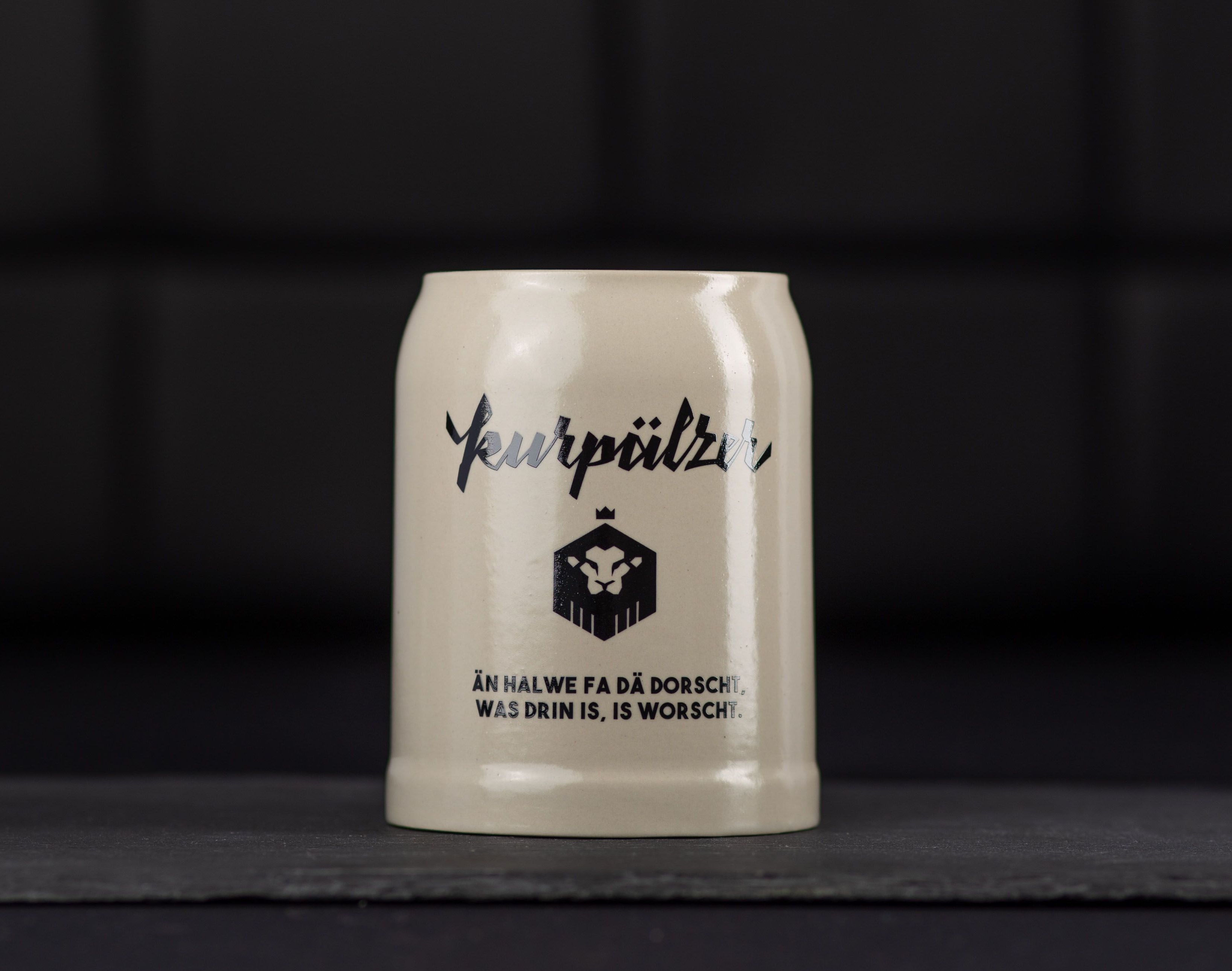 Was drin is, is worscht! Mit dem hochwertigen Kurpälzer Steinbierkrug maximalen Trinkgenuss erleben. 0,5 l in der Version Kurpälzer