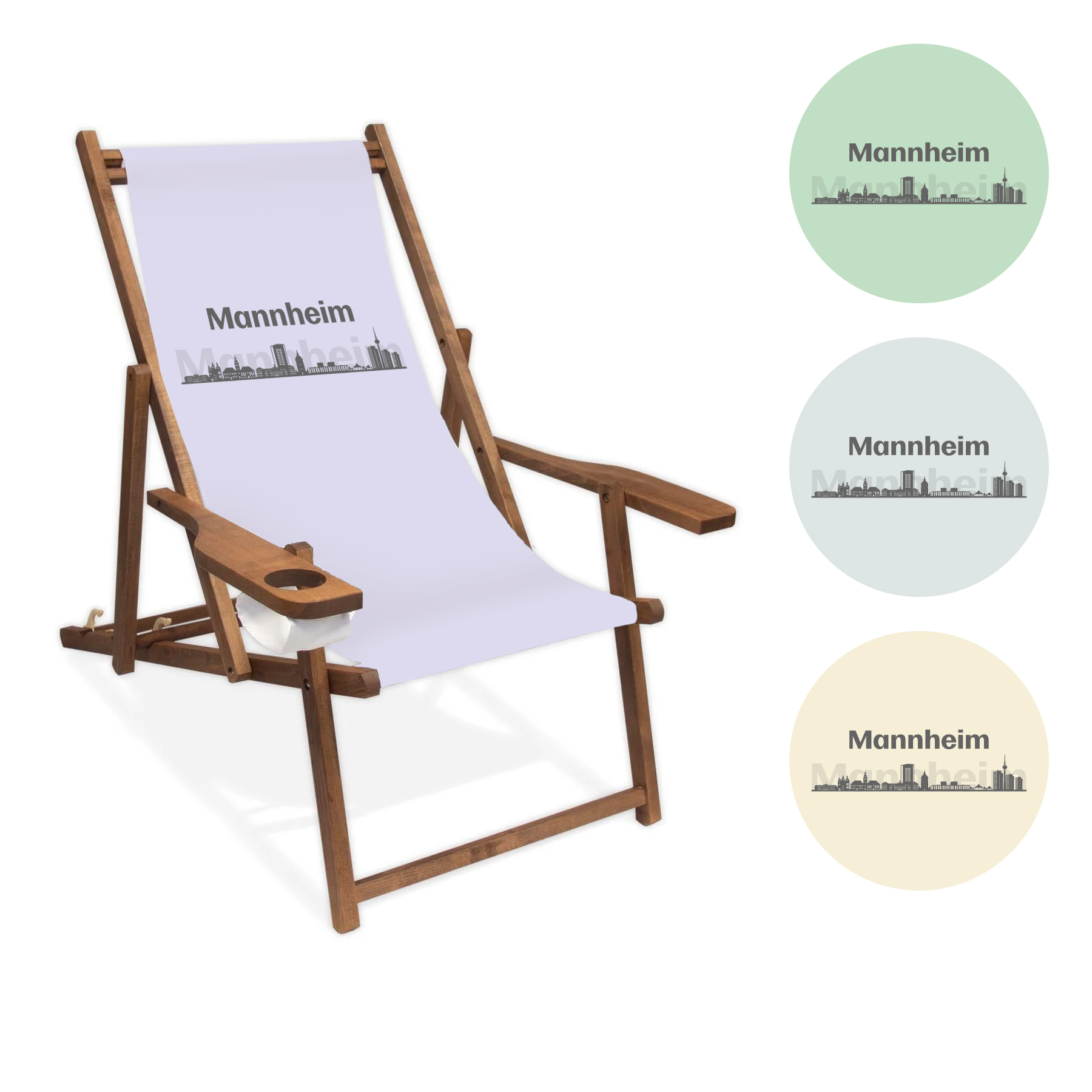 "Liegestuhl Skyline Mannheim mit grauer Schrift"