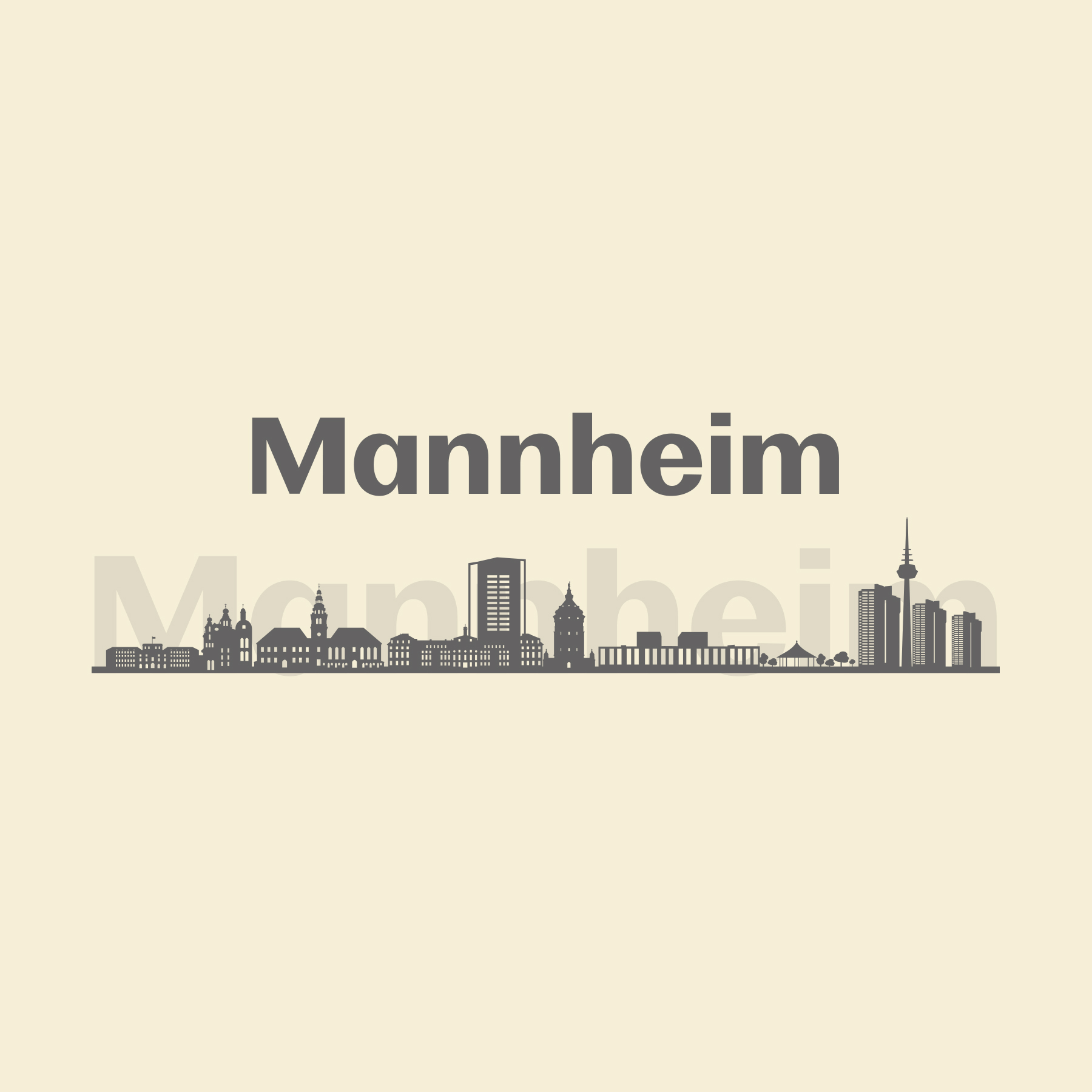 "Liegestuhl Skyline Mannheim mit grauer Schrift"