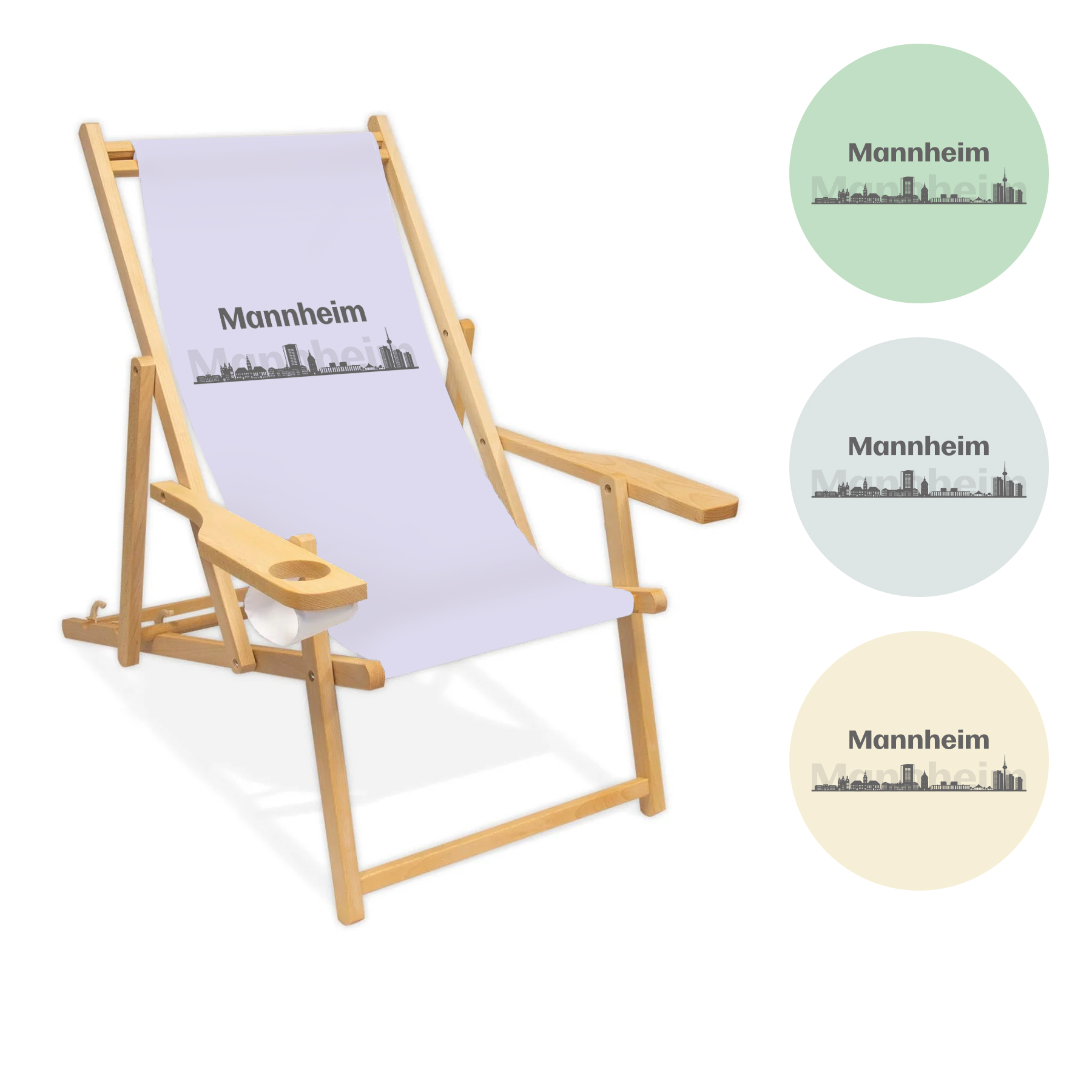 "Liegestuhl Skyline Mannheim mit grauer Schrift"