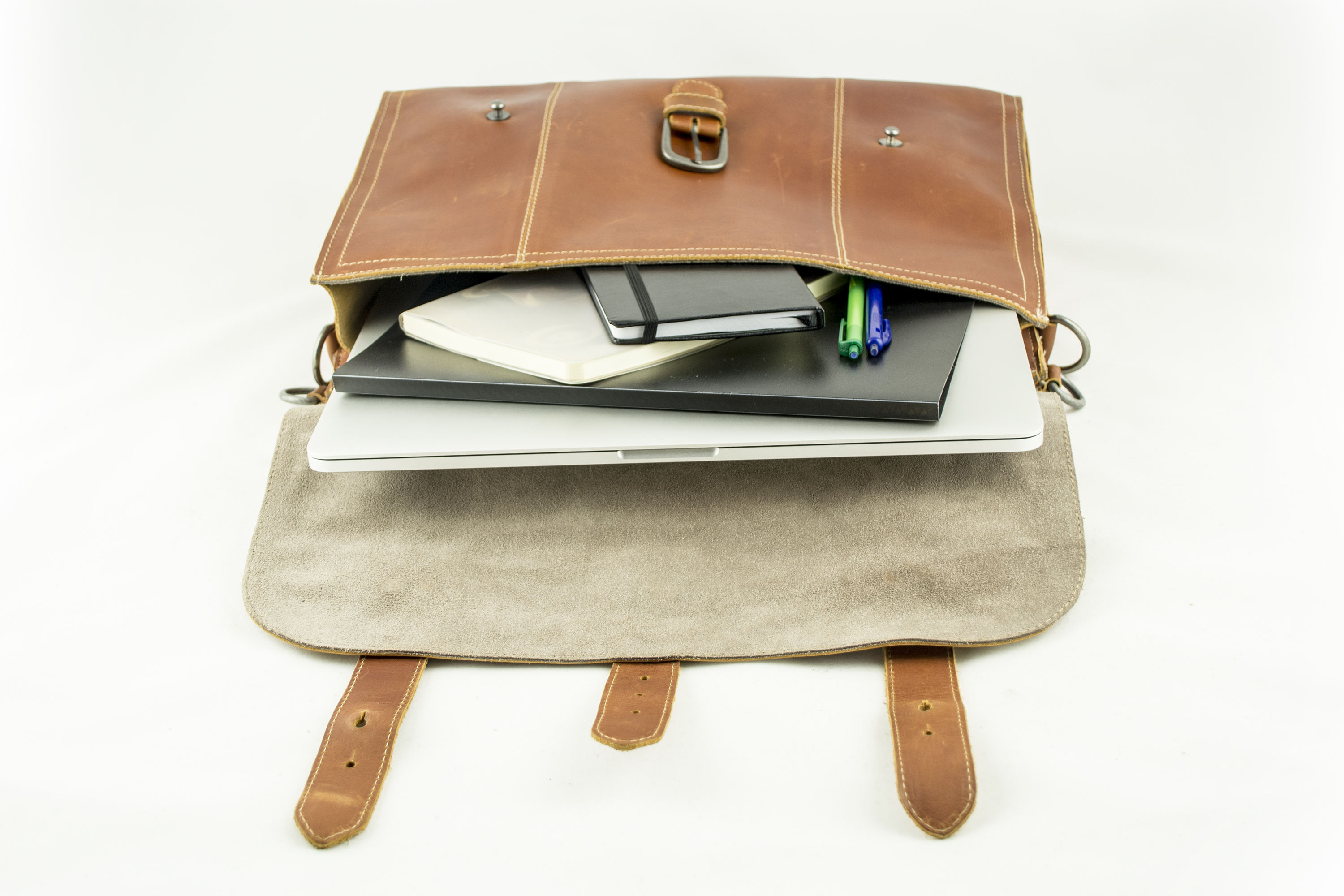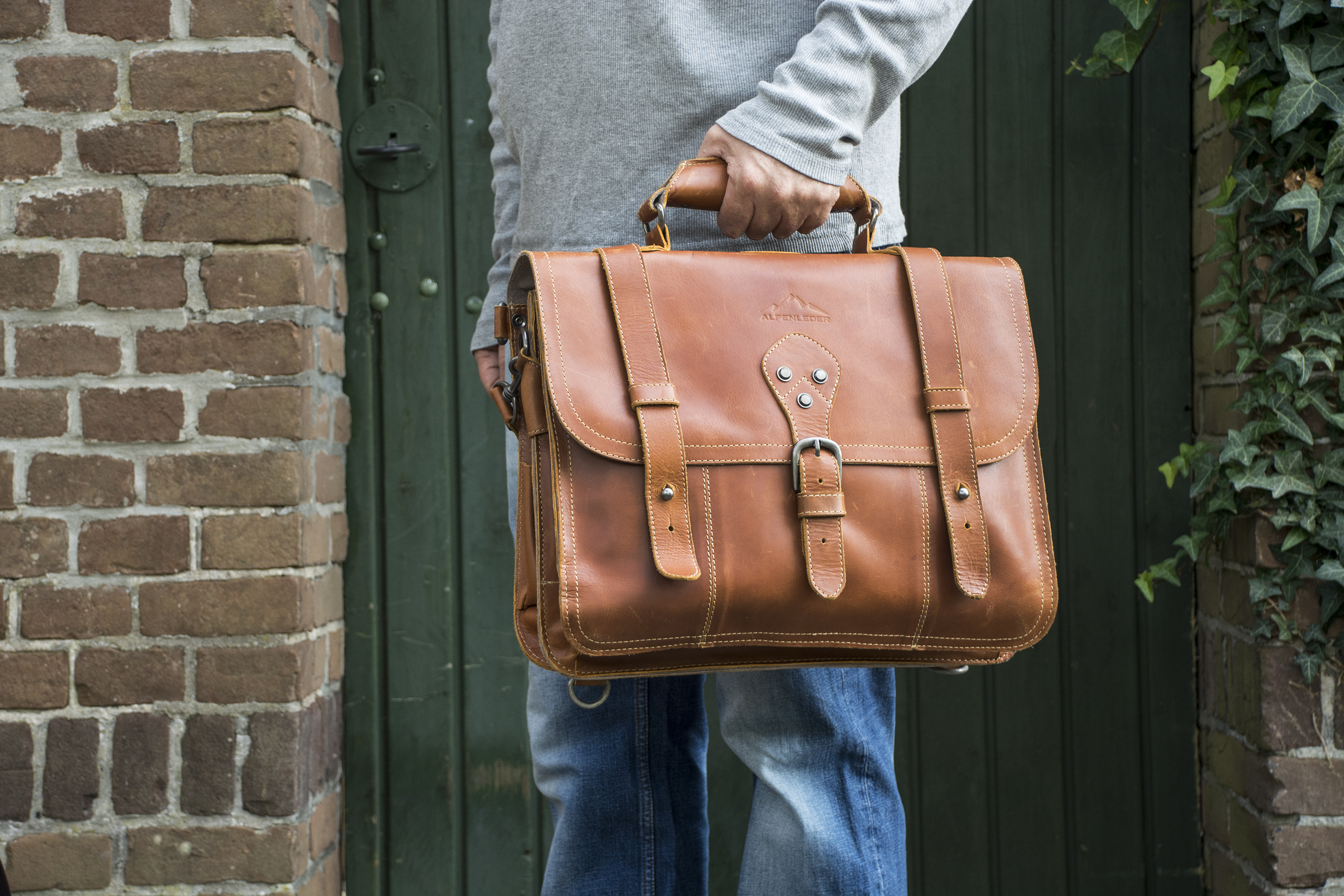 Eine Tasche für alle Fälle. Die Aktentasche »BROOKS« bietet für jede "Herausforderung" die optimale Lösung. Ob direkt am verstärkten Vollleder-Handgriff getragen, als bequeme Schultertasche oder Rucksack bzw. als Zweirad-Satteltasche auf dem Weg zur Arbeit – mit der »BROOKS« ist man immer bestens unterwegs. Dank eines Lederbandes mit Karabinerhaken ist der Schlüsselbund stets griffbereit. Die Umschlagklappe ist mit drei Ledergurten sicher verschließbar. Weiter verfügt die »BROOKS« über eine Außentasche auf der Rückseite sowie zwei seitliche Steckfächer.