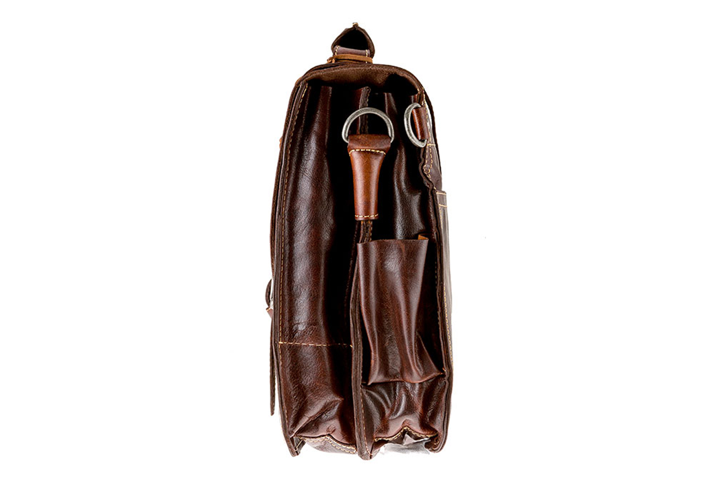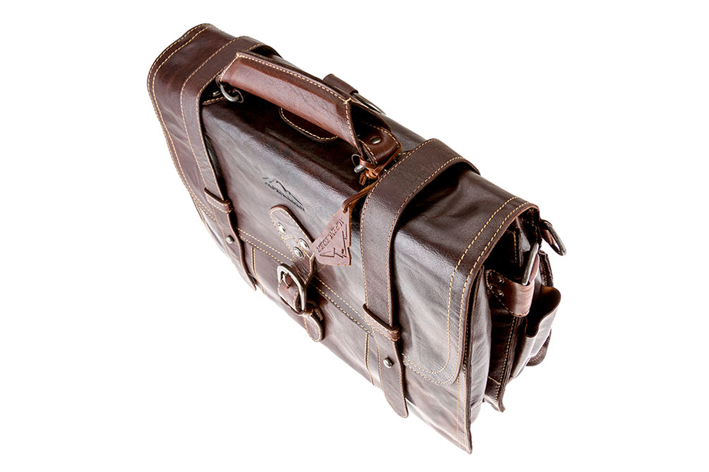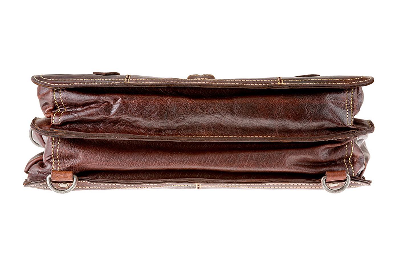 Eine Tasche für alle Fälle. Die Aktentasche »BROOKS« bietet für jede "Herausforderung" die optimale Lösung. Ob direkt am verstärkten Vollleder-Handgriff getragen, als bequeme Schultertasche oder Rucksack bzw. als Zweirad-Satteltasche auf dem Weg zur Arbeit – mit der »BROOKS« ist man immer bestens unterwegs. Dank eines Lederbandes mit Karabinerhaken ist der Schlüsselbund stets griffbereit. Die Umschlagklappe ist mit drei Ledergurten sicher verschließbar. Weiter verfügt die »BROOKS« über eine Außentasche auf der Rückseite sowie zwei seitliche Steckfächer.