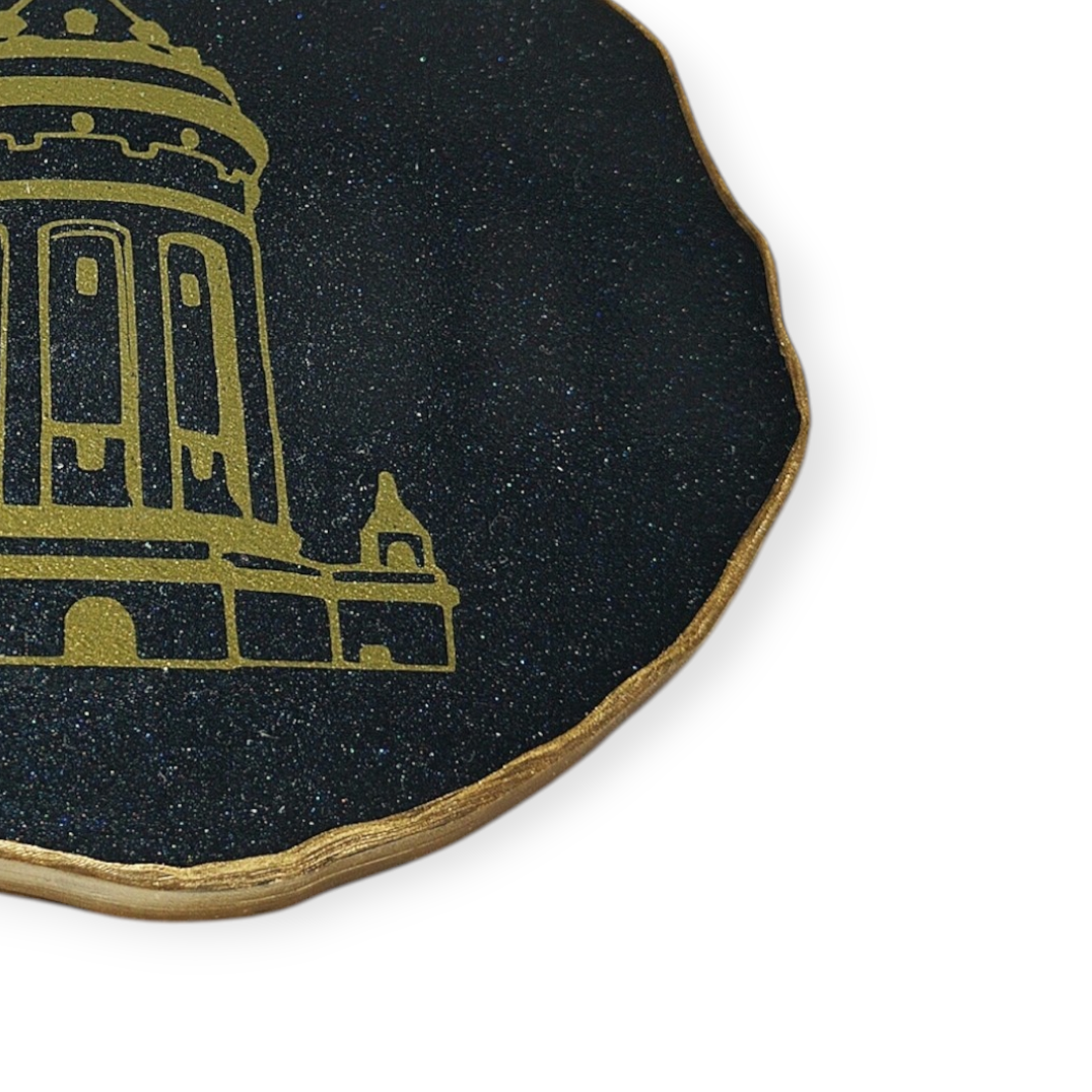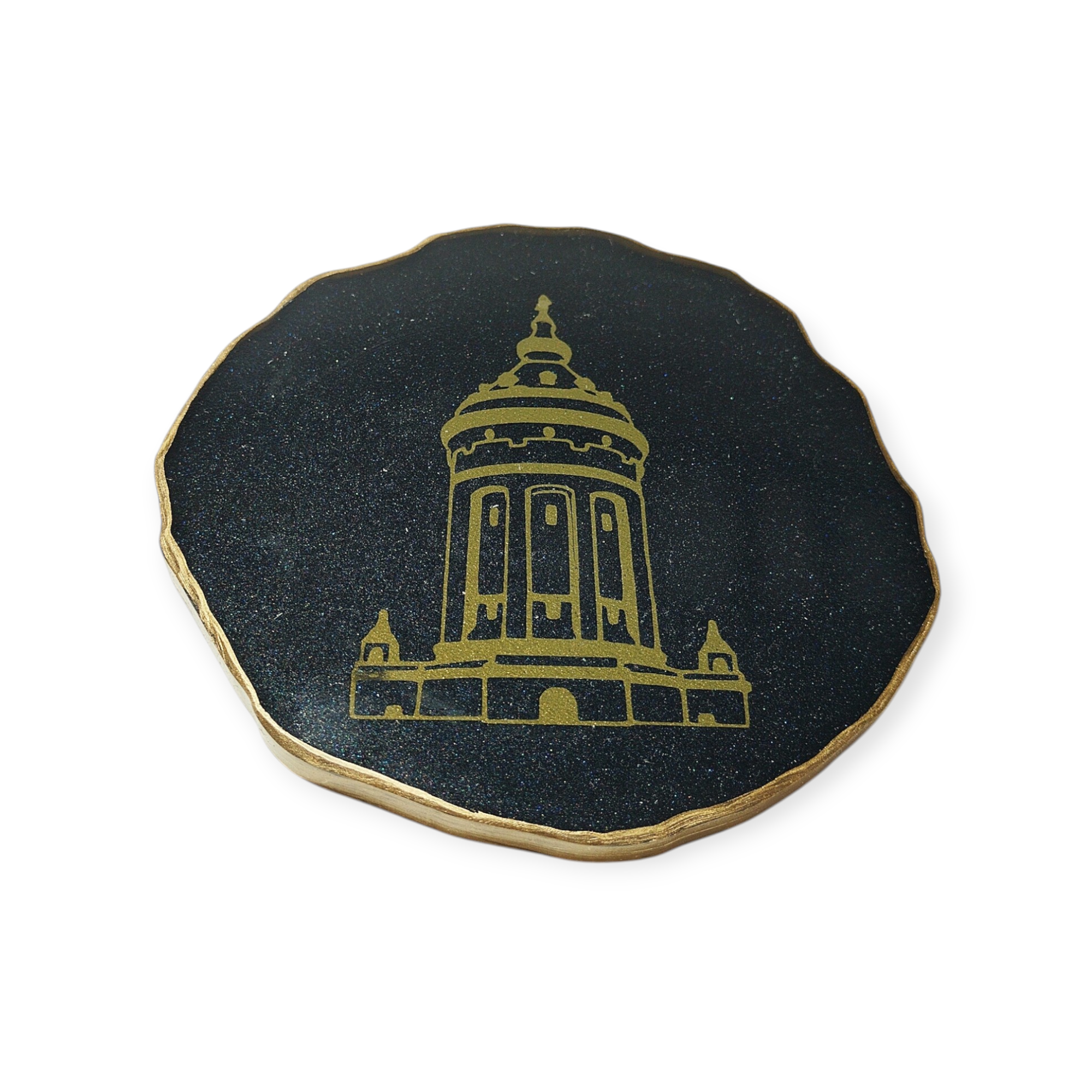 Der Mannheimer Wasserturm als Untersetzer in einem wunderschönen CARAT BLACK mit unebenem Rand