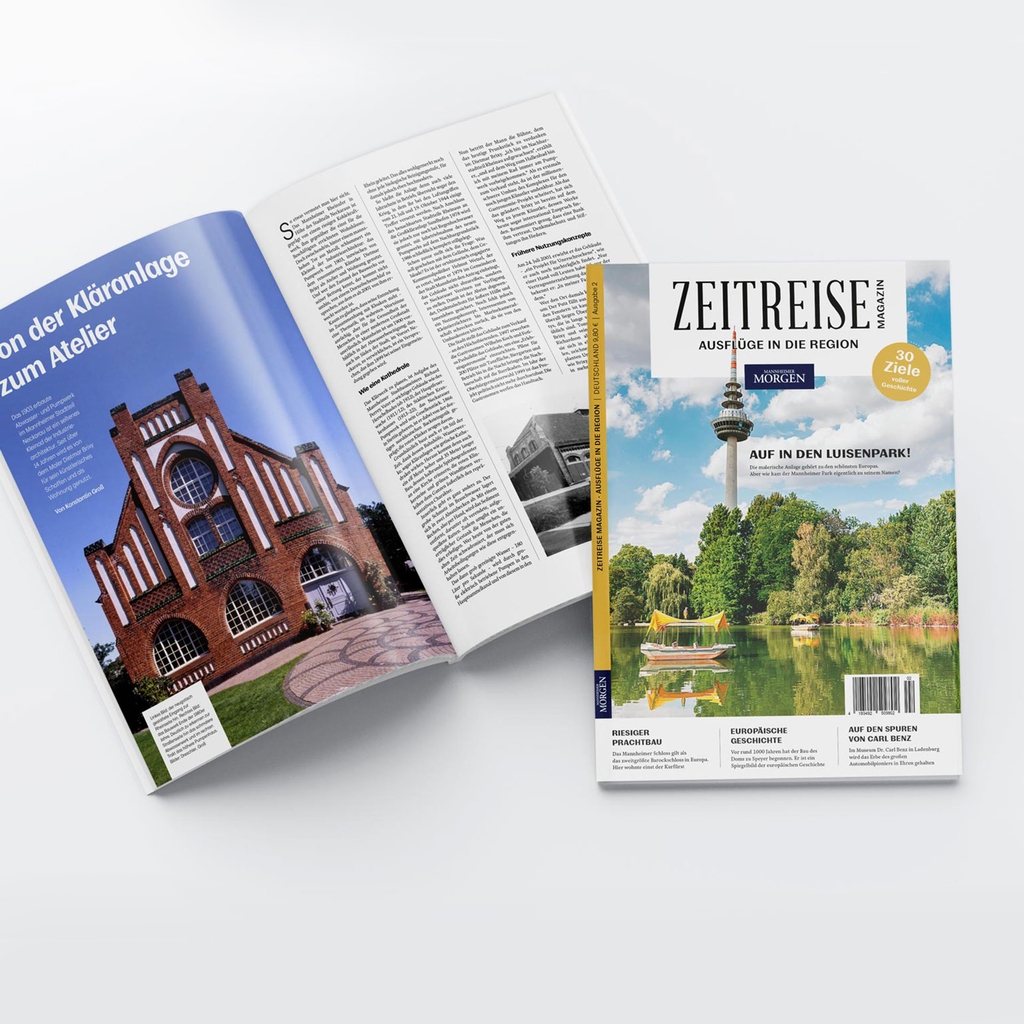 In der zweiten gedruckten Ausgabe präsentiert das „Zeitreise“-Magazin auf 100 Seiten weitere 30 interessante Ziele, um die sich viel Geschichte rankt. Mannheimer Luisenpark, Schloss und Schlossgarten Schwetzingen, Exotenwald Weinheim, Wormser Dom, Barockschloss Mannheim, Burgenweg Elmsteiner Tal und vieles mehr.